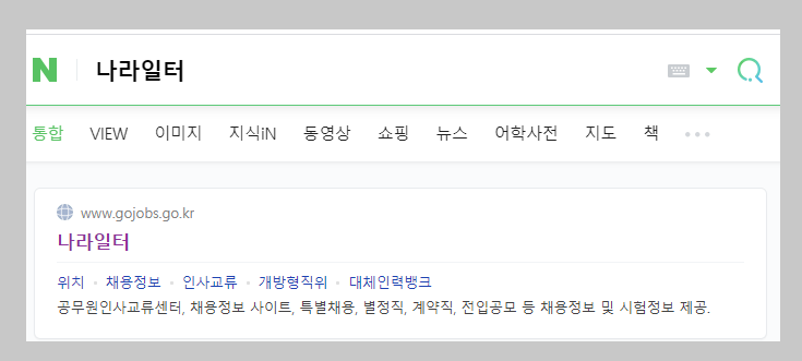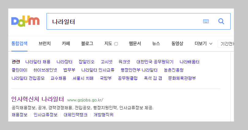 네이버나 다음에서 쉽게 '나라일터'를 검색하면 첫 번째 검색 결과로 나타나는 것을 확인할 수 있습니다.